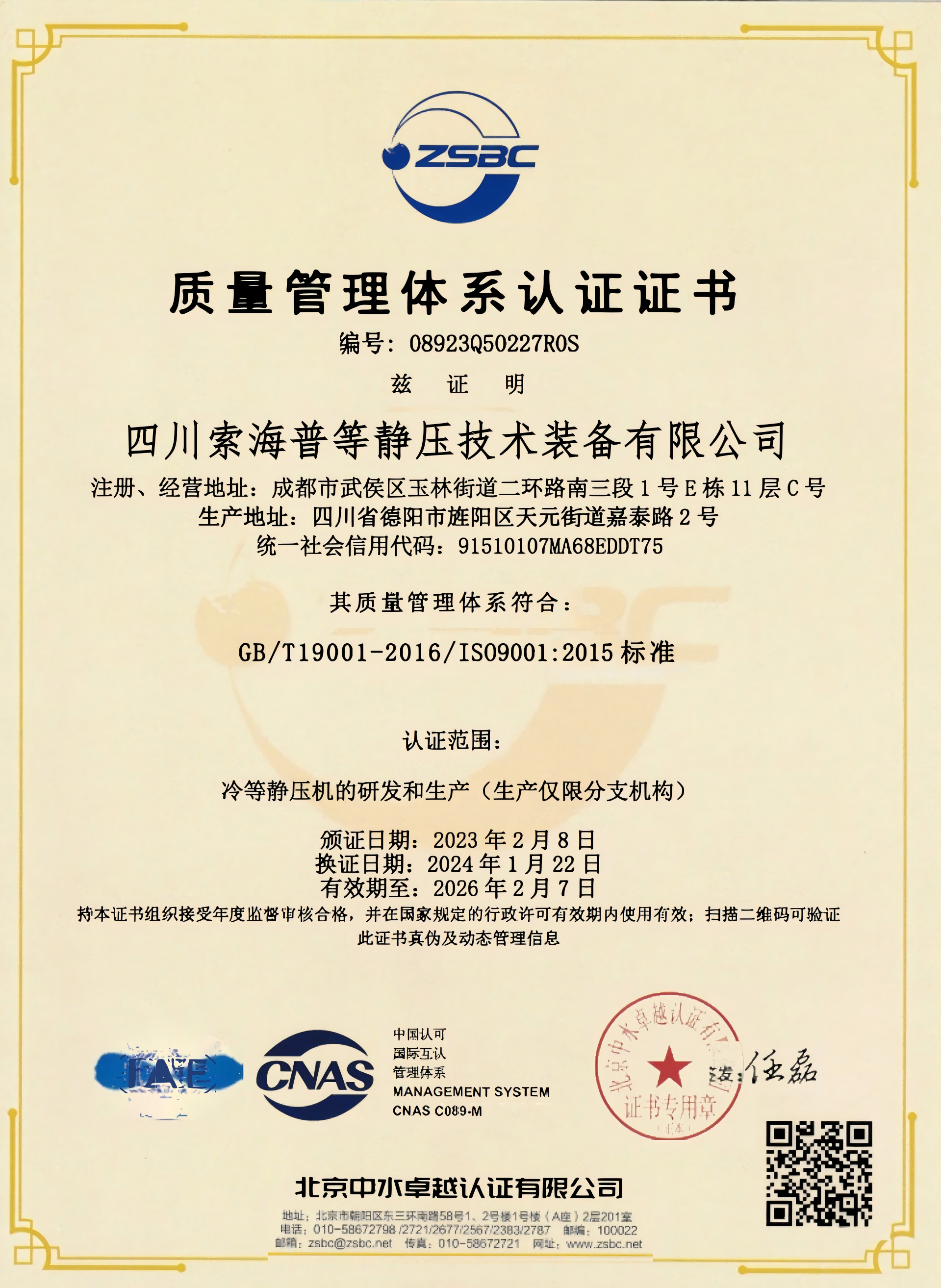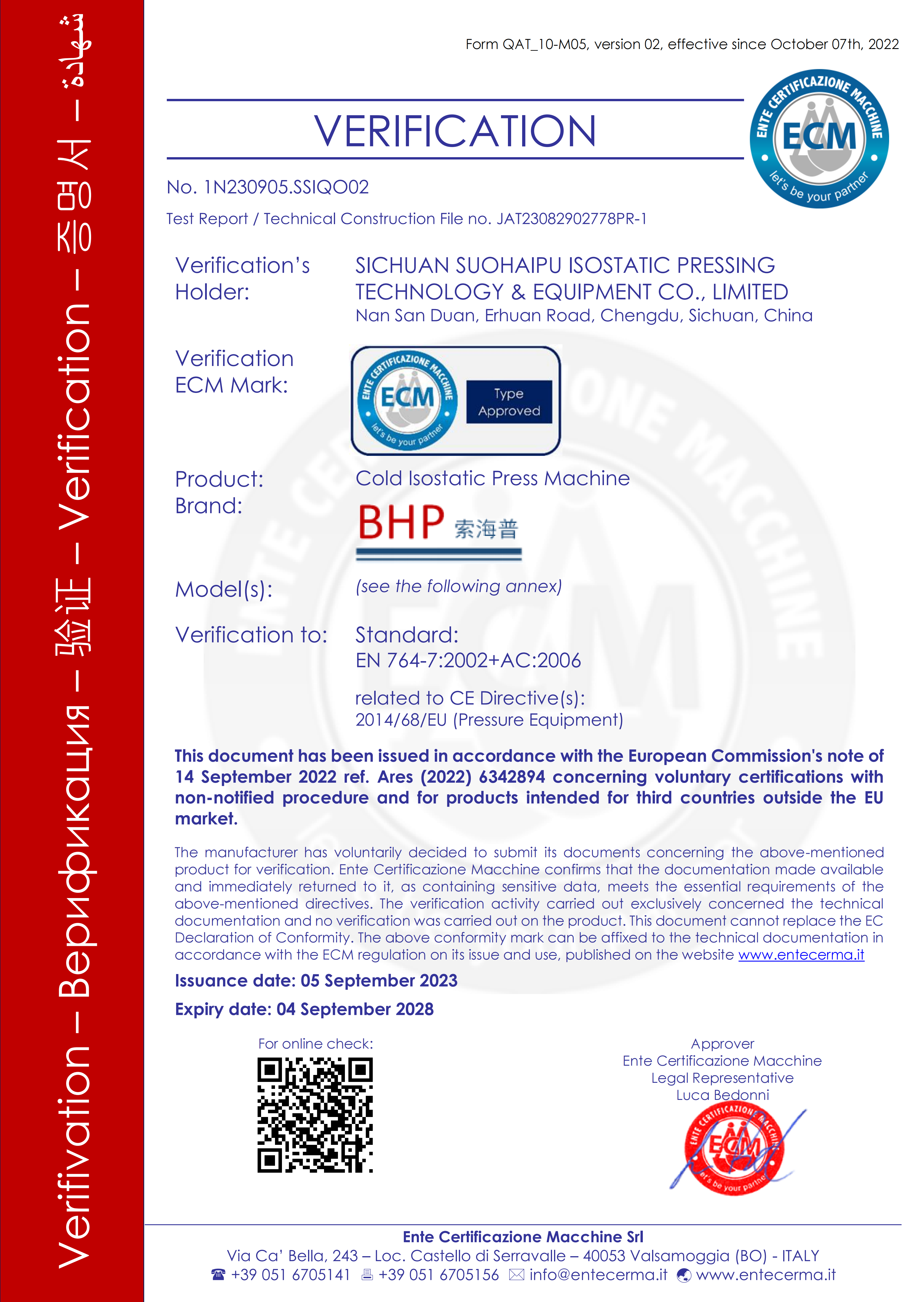 | Nombre de certificado: | VERIFICATION Cold lsostatic Press Machine |